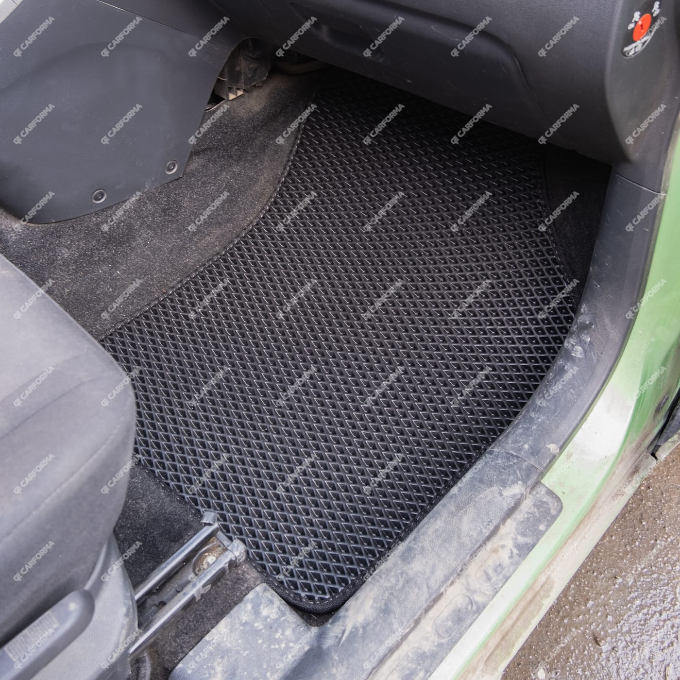 Автоковрики ЕВА не впитывают, а удерживают грязь в ячейках. Вода не катается по полу, как в резиновых половичках, однако, её все равно видно. ЕВА удобны тем, что их легко достать не пролив и вытряхнуть. Они дешевле.