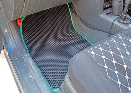 Автоковрики ЕВА не впитывают, а удерживают грязь в ячейках. Вода не катается по полу, как в резиновых половичках, однако, её все равно видно. ЕВА удобны тем, что их легко достать не пролив и вытряхнуть. Они дешевле.
