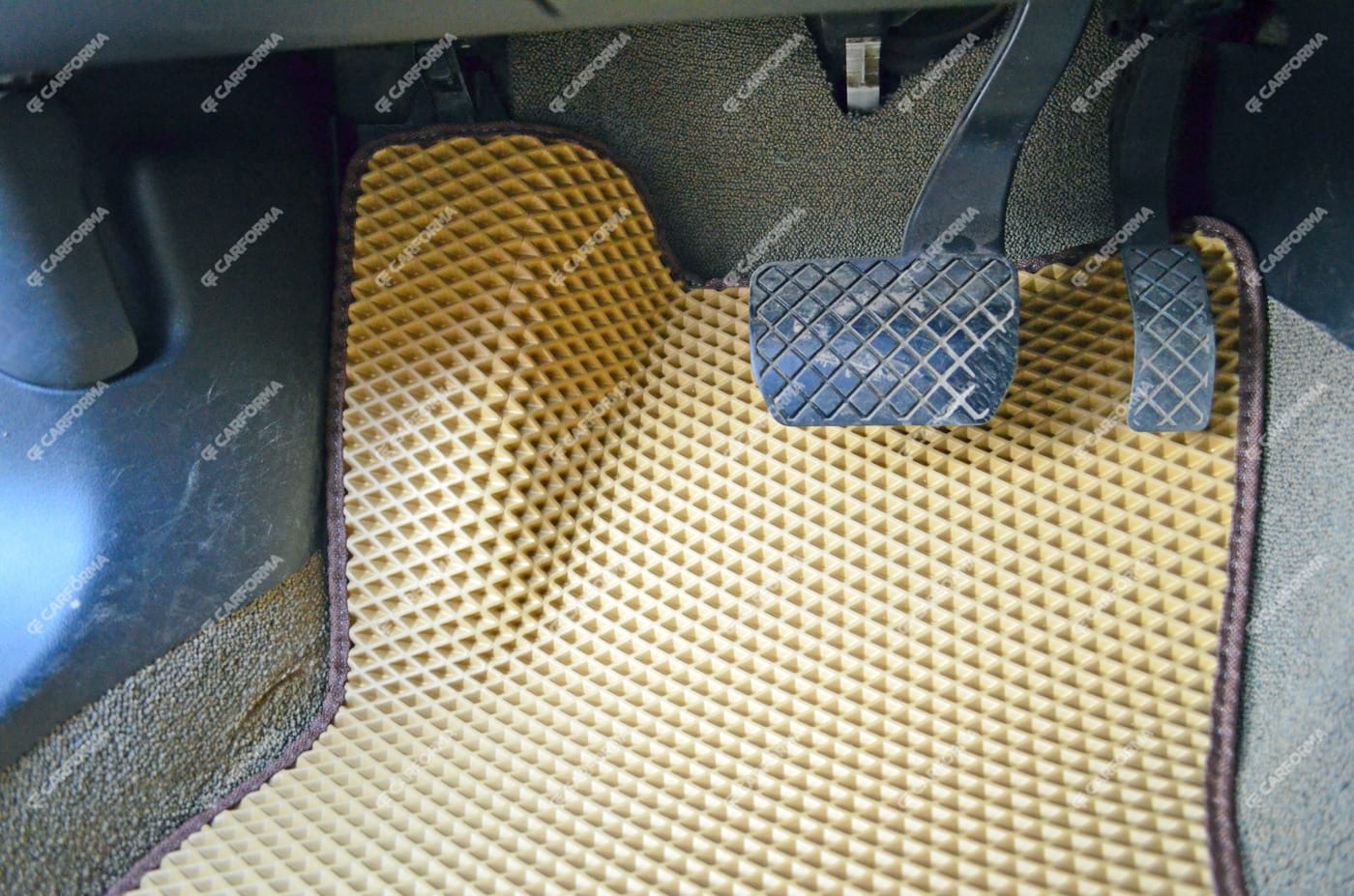 - Передние ковры полностью закрывают место под левую ногу водителя (зависит от авто)