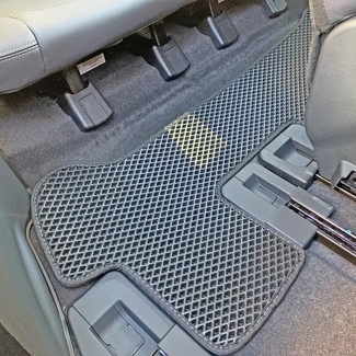 - Передние ковры полностью закрывают место под левую ногу водителя (зависит от авто)