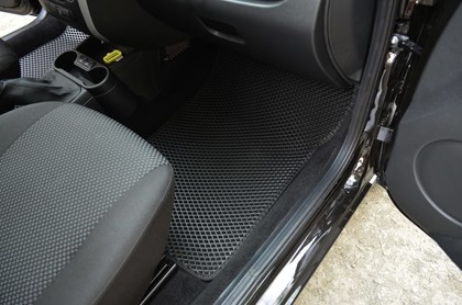 Автоковрики ЕВА не впитывают, а удерживают грязь в ячейках. Вода не катается по полу, как в резиновых половичках, однако, её все равно видно. ЕВА удобны тем, что их легко достать не пролив и вытряхнуть. Они дешевле.