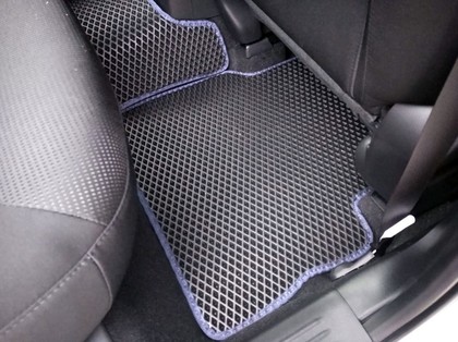 Автоковрики ЕВА не впитывают, а удерживают грязь в ячейках. Вода не катается по полу, как в резиновых половичках, однако, её все равно видно. ЕВА удобны тем, что их легко достать не пролив и вытряхнуть. Они дешевле.