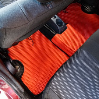 Автоковрики ЕВА не впитывают, а удерживают грязь в ячейках. Вода не катается по полу, как в резиновых половичках, однако, её все равно видно. ЕВА удобны тем, что их легко достать не пролив и вытряхнуть. Они дешевле.