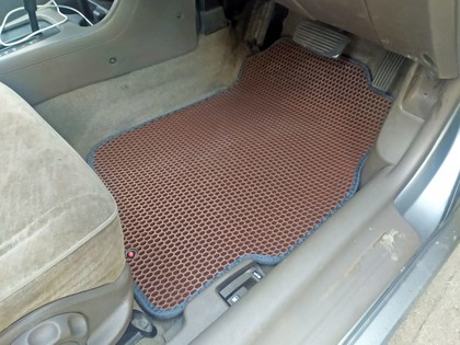 Автоковрики ЕВА не впитывают, а удерживают грязь в ячейках. Вода не катается по полу, как в резиновых половичках, однако, её все равно видно. ЕВА удобны тем, что их легко достать не пролив и вытряхнуть. Они дешевле.