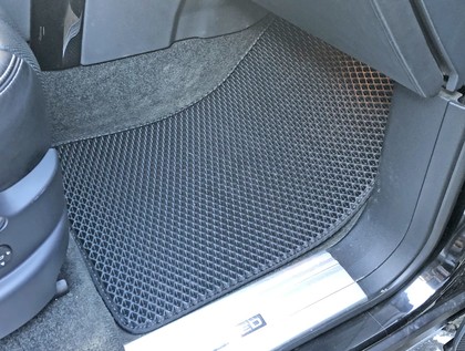 Автоковрики ЕВА не впитывают, а удерживают грязь в ячейках. Вода не катается по полу, как в резиновых половичках, однако, её все равно видно. ЕВА удобны тем, что их легко достать не пролив и вытряхнуть. Они дешевле.