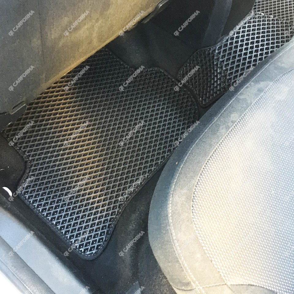 Автоковрики ЕВА не впитывают, а удерживают грязь в ячейках. Вода не катается по полу, как в резиновых половичках, однако, её все равно видно. ЕВА удобны тем, что их легко достать не пролив и вытряхнуть. Они дешевле.